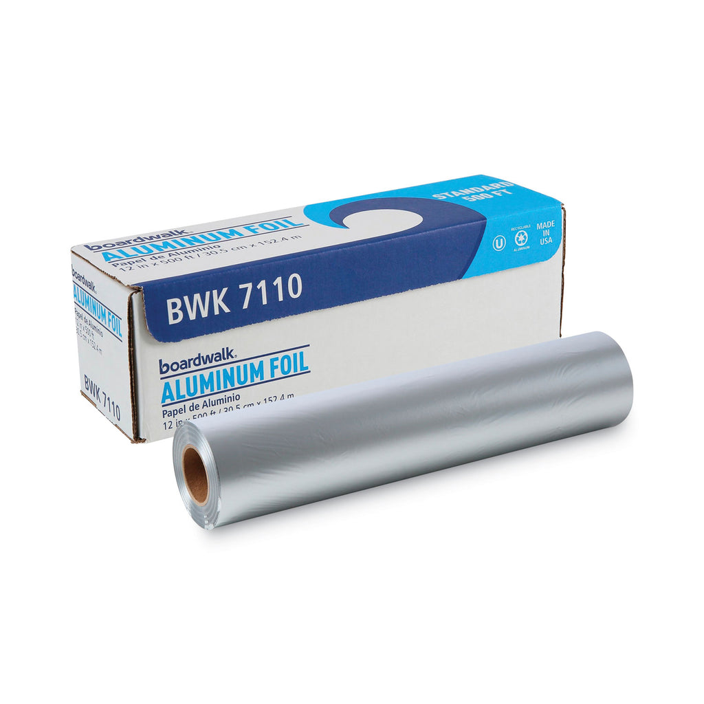 Boardwalk® Standard Aluminum Foil Roll is high-quality aluminum foil with greater strength than standard rolls. Designed for heavy use with durable and tough foil that doesn’t easily tear during use. 16-micron thickness is good for medium-level endurance. Foil conveniently comes in a continuous roll in a self-enclosing box, equipped with a tearing edge with standard cutting edges. Great for food service, cafeterias, restaurants, catering, and carry-out providers.