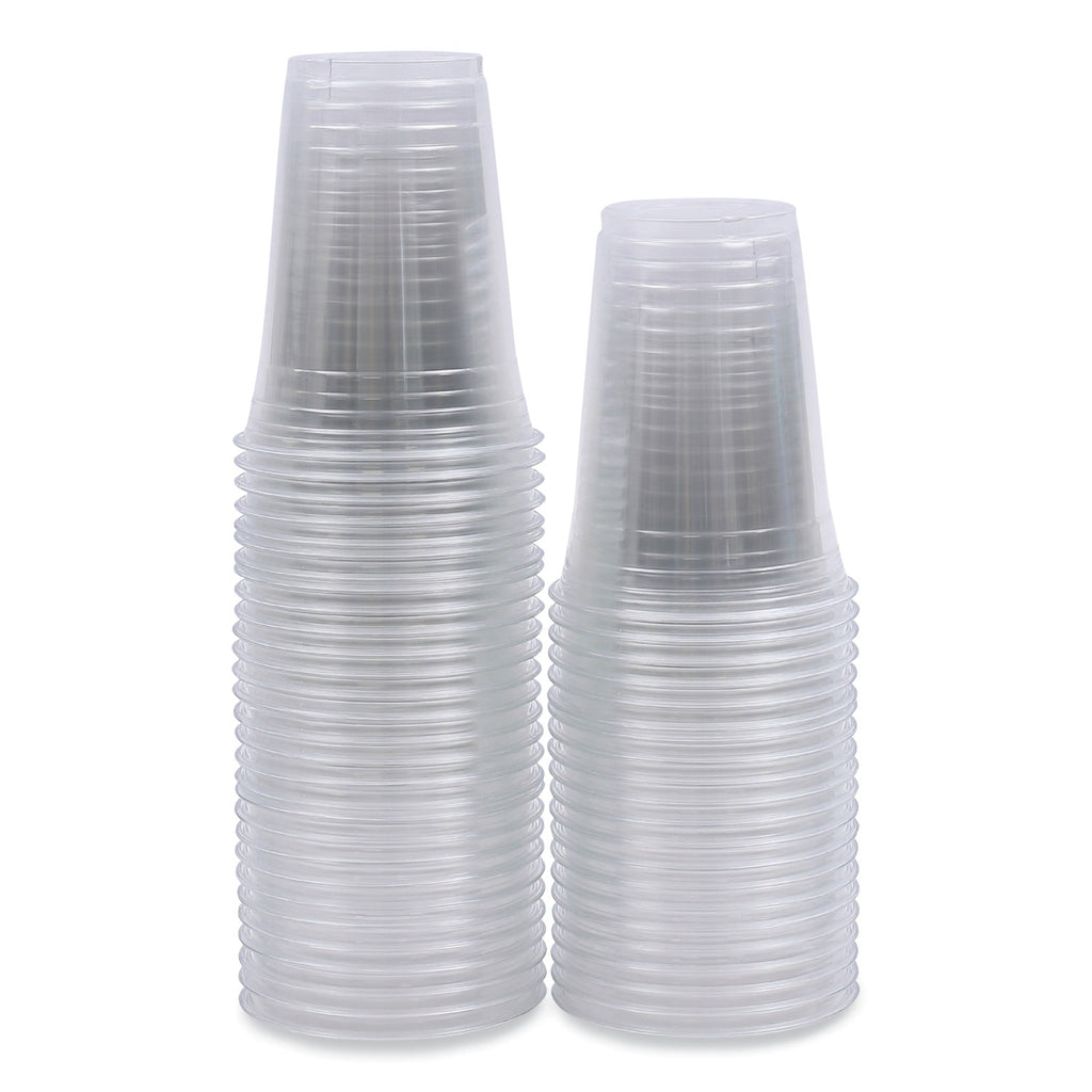 The clear option for cold drinks, high-quality PET plastic cups provide an upscale feel at an economical price. Durable and sturdy leakproof plastic cups are great for daily use, events, or offices. Thoughtfully designed with ridges around the cup and a thick rim for gripping or using a lid. The exceptional clarity of the plastic allows you to showcase snacks, cutlery, or other small items.