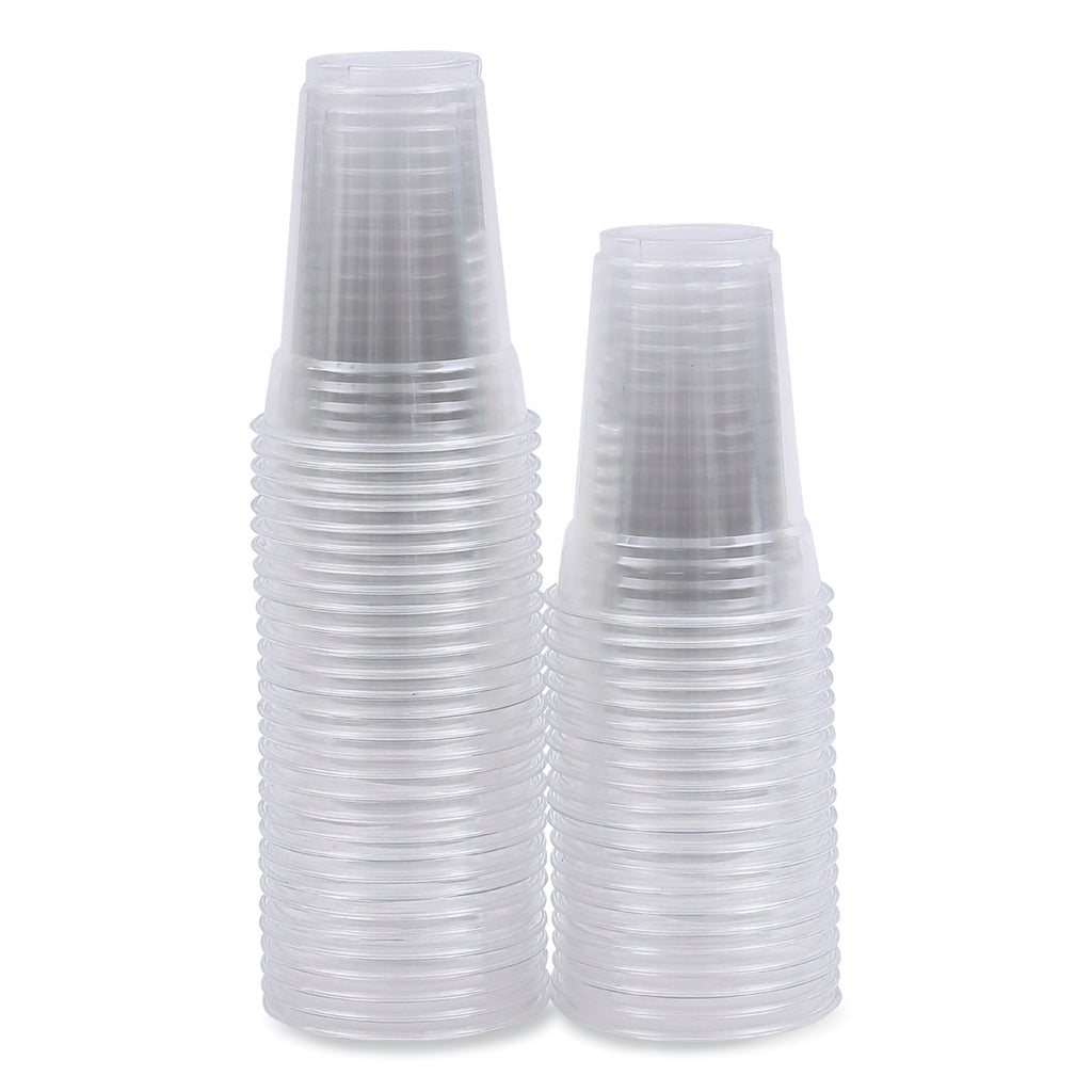 The clear option for cold drinks, high-quality PET plastic cups provide an upscale feel at an economical price. Durable and sturdy leakproof plastic cups are great for daily use, events, or offices. Thoughtfully designed with ridges around the cup and a thick rim for gripping or using a lid. The exceptional clarity of the plastic allows you to showcase snacks, cutlery, or other small items.