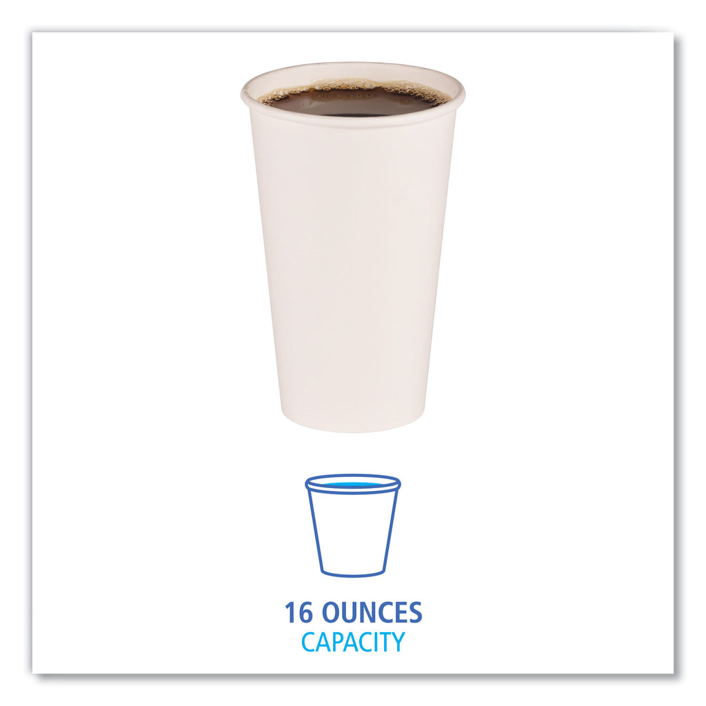Warm up with a toasty beverage in a convenient, disposable paper cup. These low-cost cups are poly-lined to help resist heat and prevent leaks. Thick rim is great for gripping and sipping. They are perfect for serving coffee, tea, and other hot beverages on the go. Compatible with Boardwalk® Hot Cup Lids for an even more secure and portable beverage.