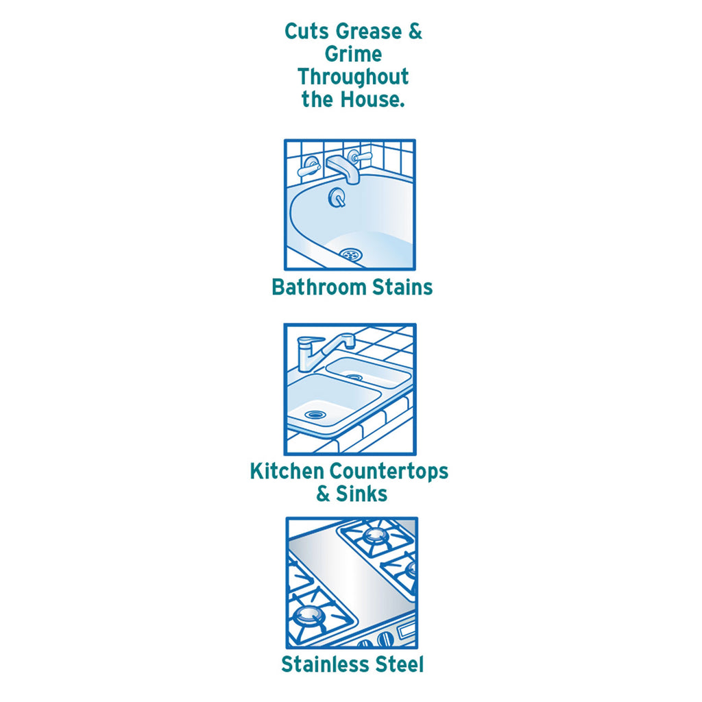 - Cuts through grime, dirt and grease on multiple surfaces.