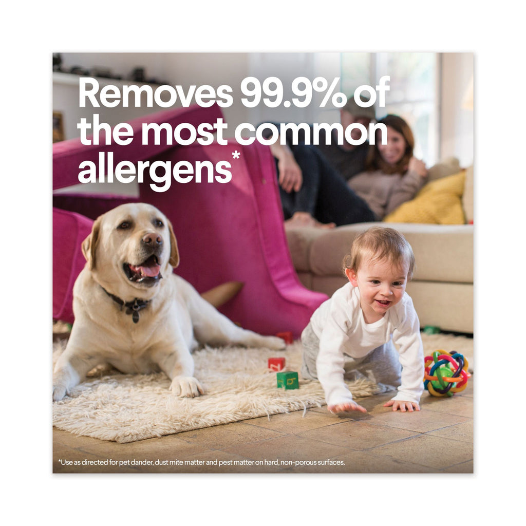 • All-purpose disposable wipes remove common allergens, germs and messes on surfaces like kitchen counters, bathroom surfaces and more.