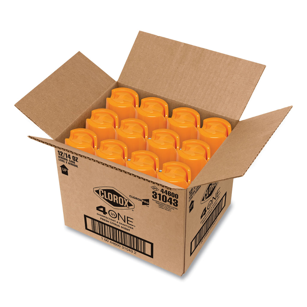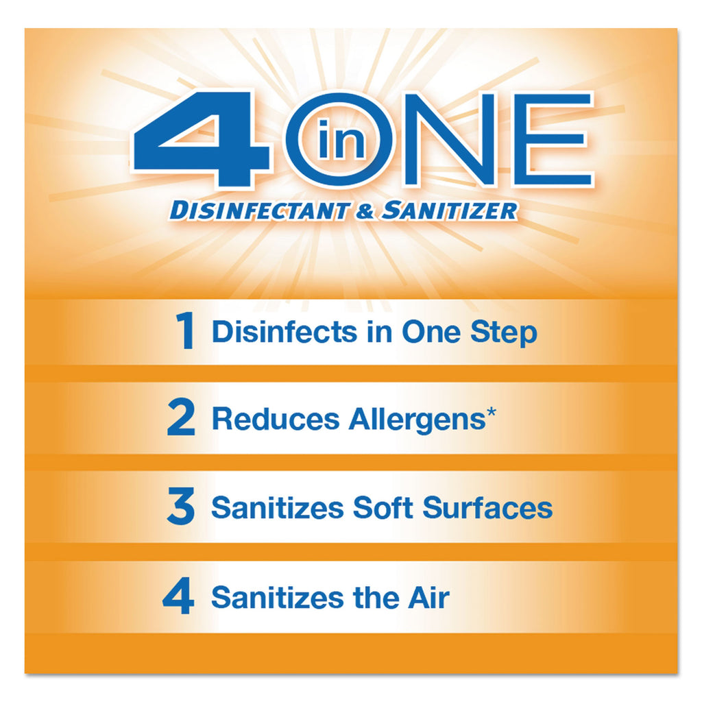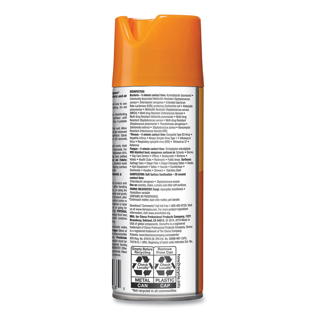 Clorox 4 in One Disinfectant & Sanitizer lets you disinfect, sanitize and reduce allergens with a single all-purpose aerosol spray. This powerful cleaner disinfects hard surfaces with 24 EPA-registered kill claims, and sanitizes soft surfaces in as little as 30 seconds. It meets EPA criteria for use against SARS-CoV-2, the virus that causes COVID-19. This disinfecting spray even kills odor-causing bacteria in the air, and leaves behind a refreshing scent. On top of that, Clorox 4 in One reduces pet dander, dust mite matter and cockroach matter allergens which can trigger allergies and asthma. Ideal for offices, day care centers, schools, hotels, restaurants and other commercial facilities. No precleaning required. CloroxPro, where clean means everything.