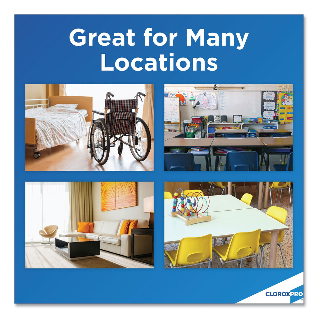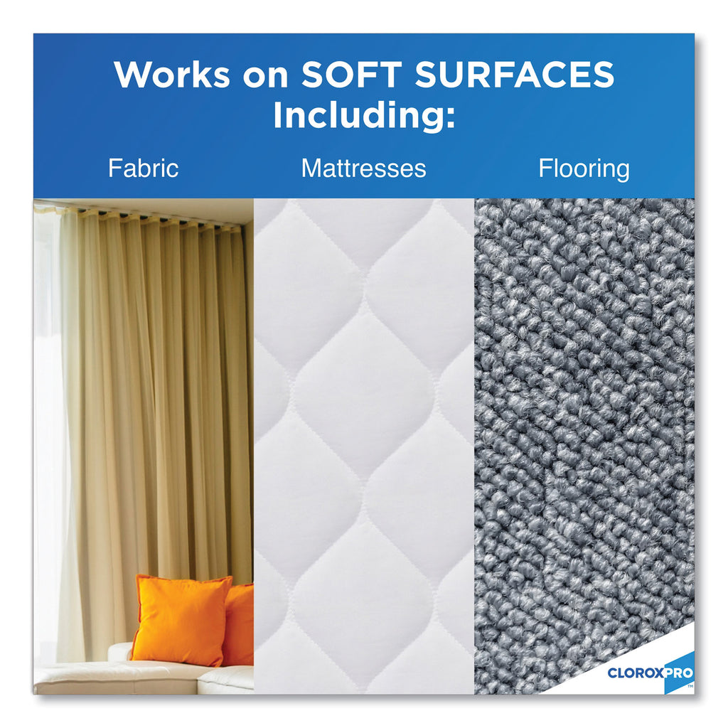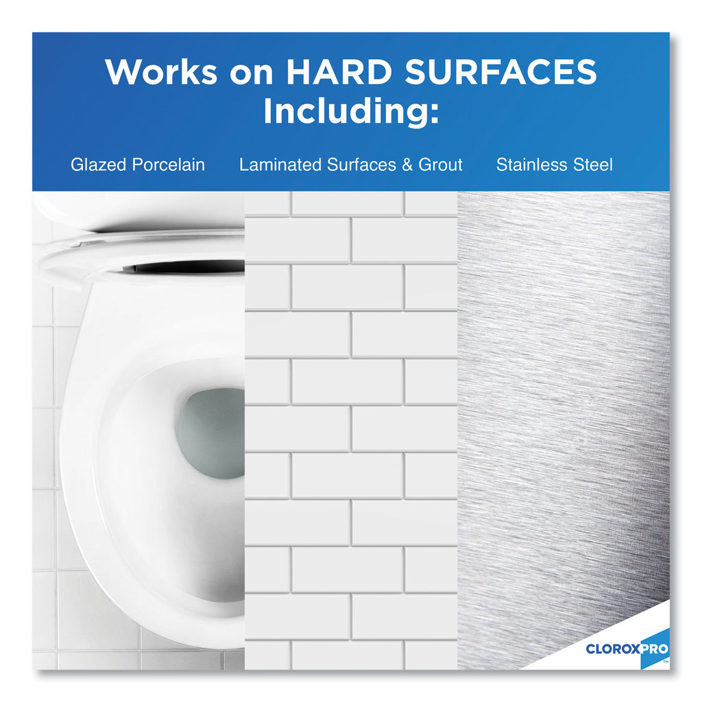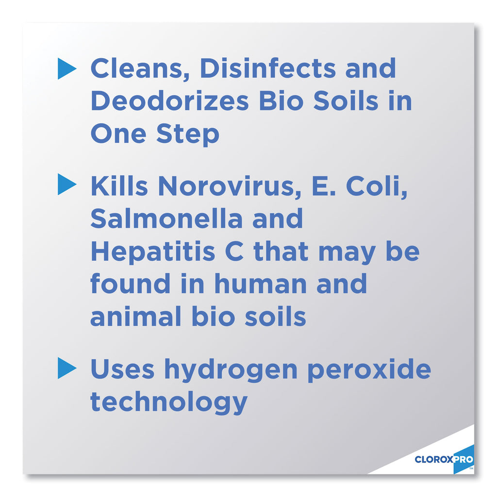CloroxPro™ Disinfecting Bio Stain & Odor Remover is perfect for disinfecting and removing the toughest odors and stains in one step. This bleach free stain and odor remover uses hydrogen peroxide technology to kill HIV, herpes, and flu virus in 30 seconds, kills hepatitis B and hepatitis C in 1 minute, and kills norovirus, E. coli, Salmonella and MRSA in 5 minutes. It also kills odor-causing bacteria on hard non-porous surfaces. Compliant with OSHA Bloodborne pathogens standard, Disinfecting Bio Stain and Odor Remover works great on stains from blood, feces, vomit, sweat, saliva, and urine. This versatile disinfectant can be used to clean many different hard and soft surfaces such as walls, tile, grout, concrete, carpet, fabrics, upholstery and more. Use this stain and odor remover on toilets, counter tops, mattresses, and it can even be used as a pre treatment for laundry. Designed for easy refilling to meet needs of heavy users. Ideal for hotels, care centers, schools, offices, restaurants and other commercial facilities. CloroxPro™, where clean means everything. Packaging may vary.
