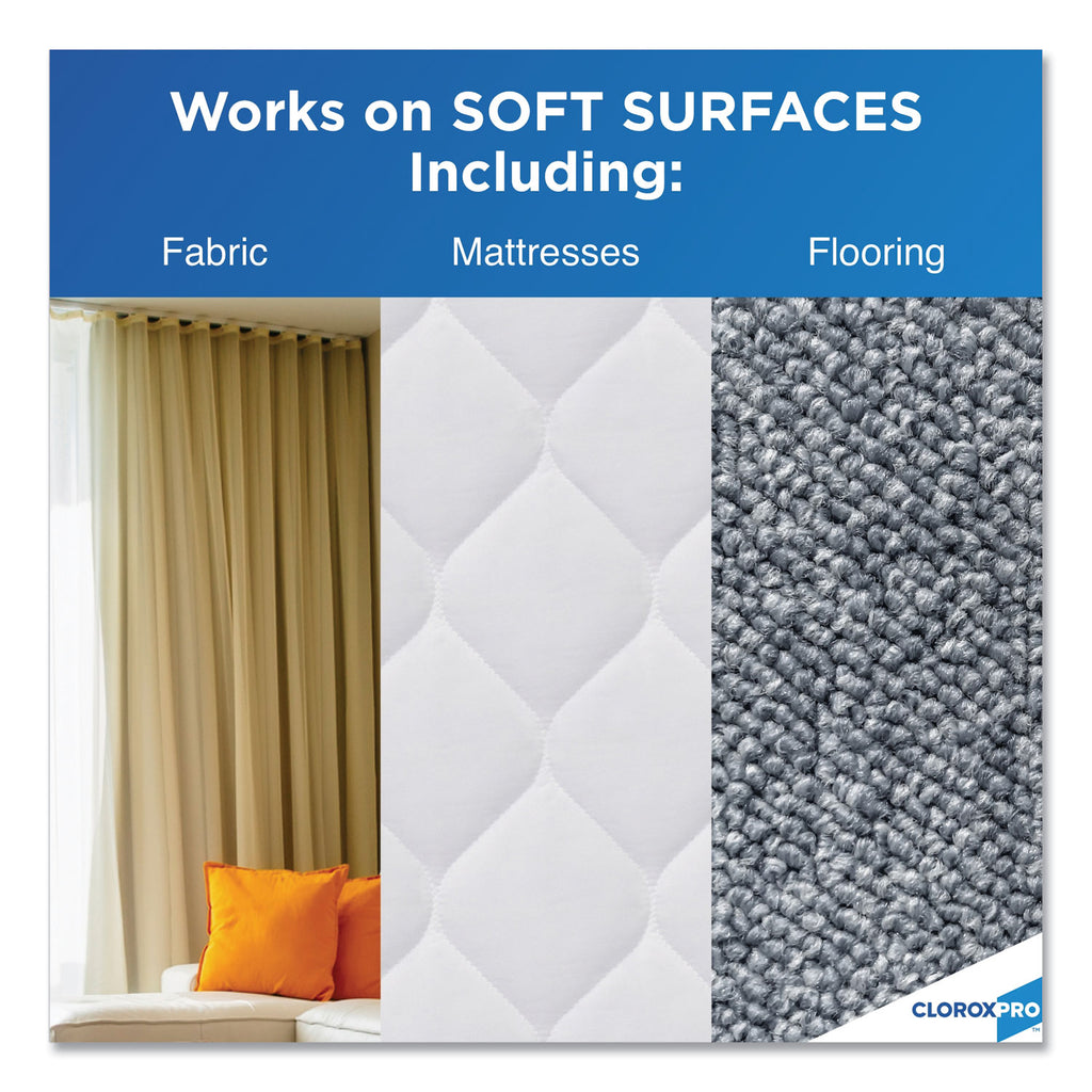 CloroxPro™ Disinfecting Bio Stain & Odor Remover is perfect for disinfecting and removing the toughest odors and stains in one step. This bleach free stain and odor remover uses hydrogen peroxide technology to kill HIV, herpes, and flu virus in 30 seconds, kills hepatitis B and hepatitis C in 1 minute, and kills norovirus, E. coli, Salmonella and MRSA in 5 minutes. It also kills odor-causing bacteria on hard non-porous surfaces. Compliant with OSHA Bloodborne pathogens standard, Disinfecting Bio Stain and Odor Remover works great on stains from blood, feces, vomit, sweat, saliva, and urine. This versatile disinfectant can be used to clean many different hard and soft surfaces such as walls, tile, grout, concrete, carpet, fabrics, upholstery and more. Use this stain and odor remover on toilets, counter tops, mattresses, and it can even be used as a pre treatment for laundry. Designed for easy refilling to meet needs of heavy users. Ideal for hotels, care centers, schools, offices, restaurants and other commercial facilities. CloroxPro™, where clean means everything. Packaging may vary.