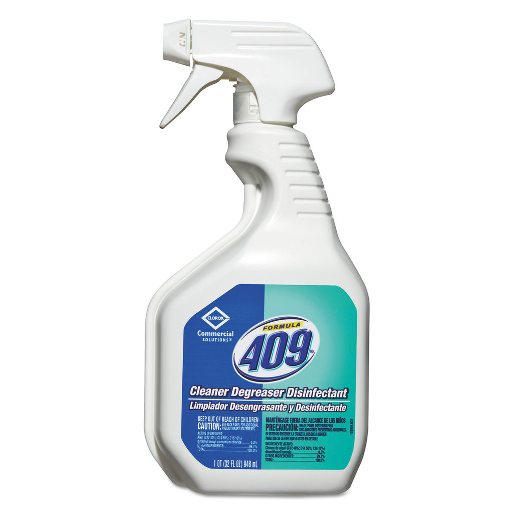 Formula 409® Cleaner Degreaser Disinfectant dissolves grease, grime and food stains while killing 99.9% of germs. This EPA-registered disinfectant and sanitizer is formulated to kill Salmonella, Staph, E. Coli, and athlete's foot fungus on non-food-contact surfaces. From Clorox Commercial Solutions®, this degreaser and disinfectant powers through tough messes on a wide range of surfaces and is perfect for use in commercial kitchens, schools and office break rooms.