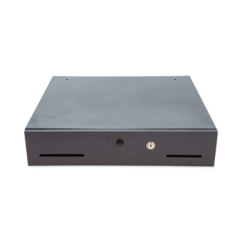 - Alarm-alert steel cash drawer with key and push-button release lock.