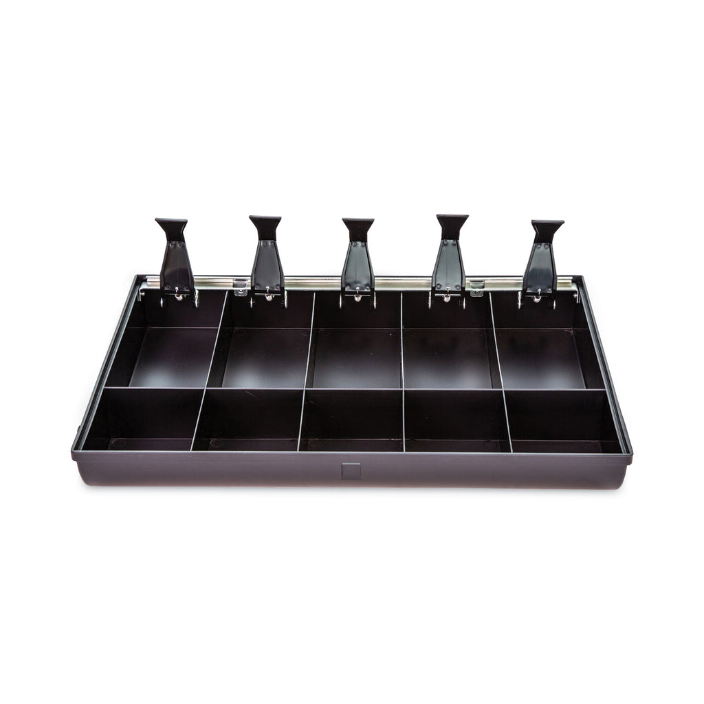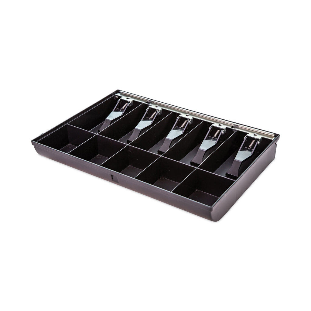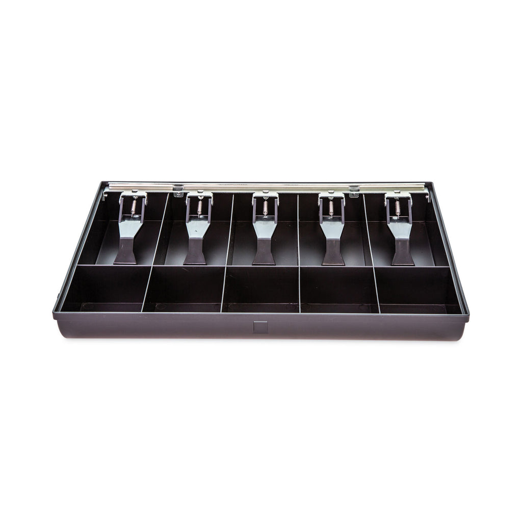 Replacement tray. No cover. Holds all you need with five compartments for bills and five compartments for coins. Solid plastic construction.
