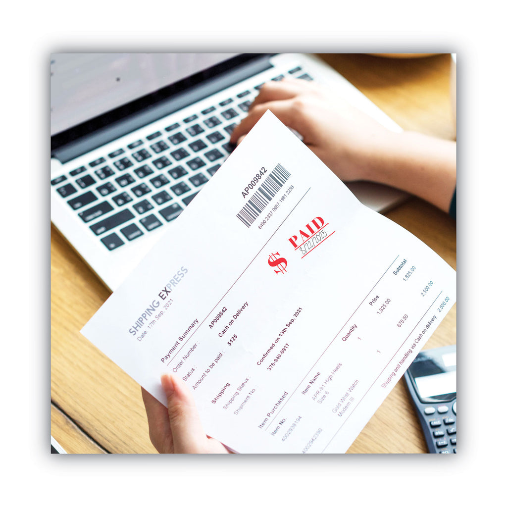 Unique dust cover automatically opens and closes while stamping. Ergonomic rubber grip. Up to 50,000 impressions.