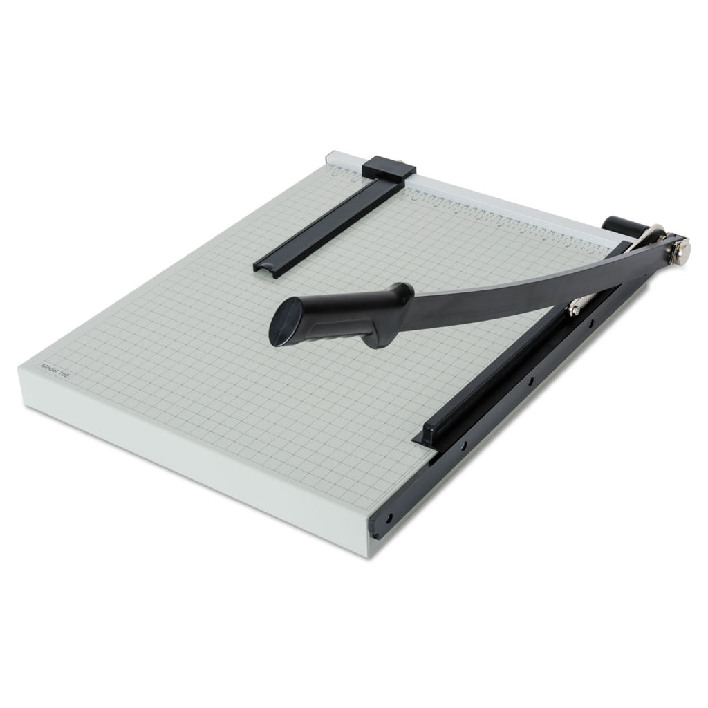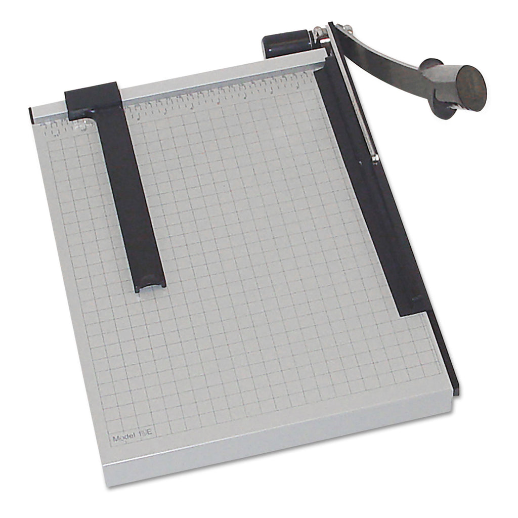 Designed to hold up to rigorous activity, day in and day out. The machine-ground, lever-style blade is sharp and accurate enough that it can remove even the tiniest sliver of paper from your work. For safety, a spring-action handle prevents the blade from falling down unexpectedly. Lightweight and marked with guides, Vantage® trimmers offer safety and convenience, while giving you the accuracy you require. To ensure an even cut, each trimmer features an automatic clamp that provides firm, even pressure, preventing paper from shifting. To protect the blade and keep fingers safe, the handle can be locked in the down position. For durability, the sturdy metal base provides a solid foundation. For measuring, the base contains carefully screened guides and an adjustable backstop -- which is the easiest way to ensure accuracy during repetitive cuts. And for portability, it's designed to be light enough to take anywhere.