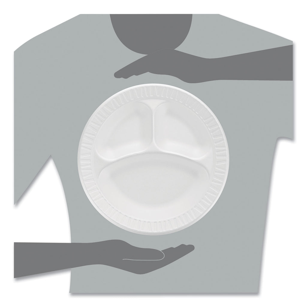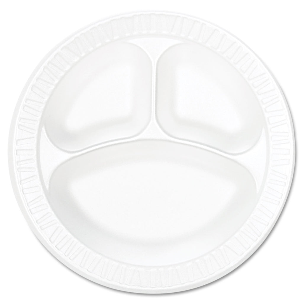 Sturdy foam dinnerware can hold a full portion of food without breaking or bending. Features a smooth, non-absorbent surface. Ideal for hot or cold entrees.