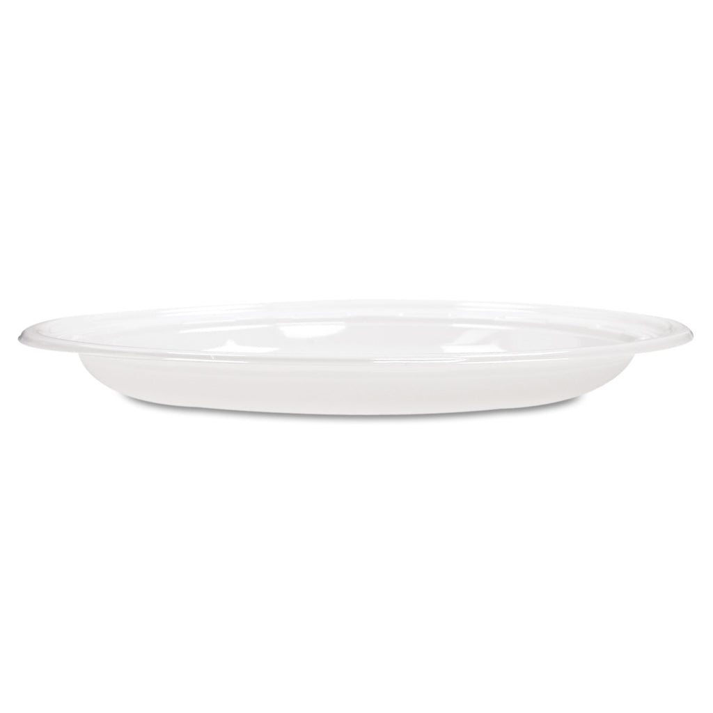 Designed to be the most rigid available. Its "crystal cap" finish produces a china-like effect, while increasing the strength of the product. Sauces won't leak through its non-absorbent, cut-resistant surface. The simple, attractive design will complement any place setting.