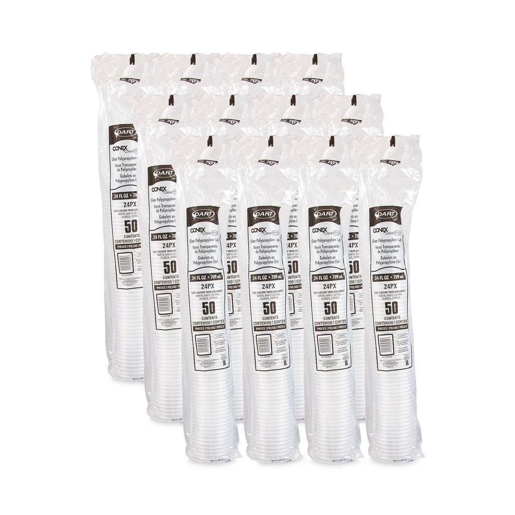 Serve cold beverages stylishly in crystal clear Conex® cups. Raised sidewall rings and rolled rim enhance rigidity. Strong, durable PET construction provides excellent crack resistance.