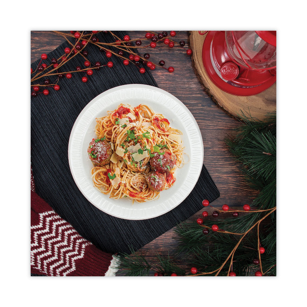 Classic design adds an element of subdued elegance to your gatherings. Lightweight yet strong and sturdy foam supports heavy portions without bending. Glossy plastic lamination provides excellent leak and cut resistance. Insulated to accommodate hot and cold foods.
