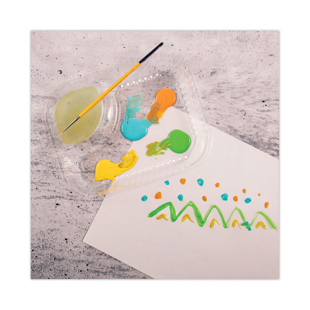 Clear food trays provide an attractive, convenient way to serve food with sauce on the side. Feature a portion-controlled well for cheese, dips, or sauces. Lightweight and stackable. Wide side ribbing adds extra strength.