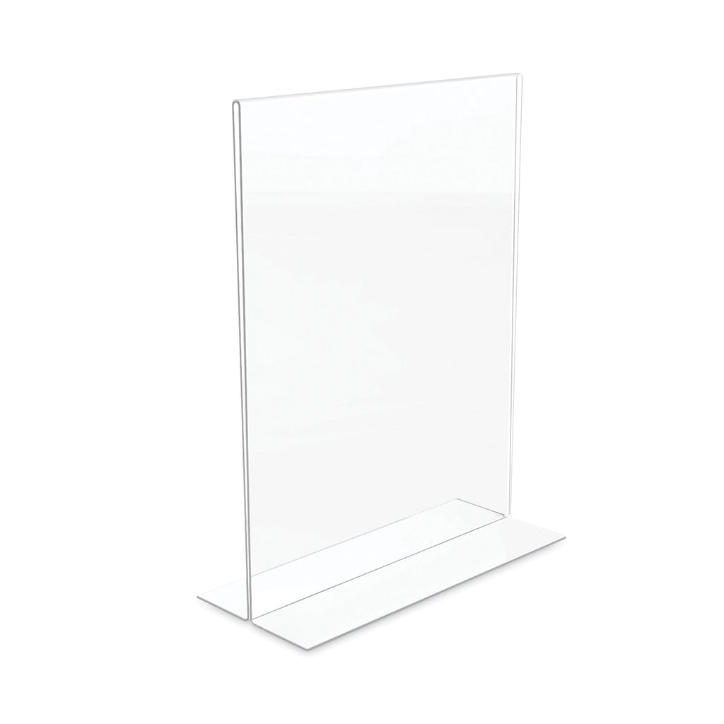Value priced, light-duty freestanding plastic T-frame sign holder lets you display signs where you need them most. Two-sided for double the impact. Bottom loading. Use on counter or desk. Create professional looking signs in seconds from your own office with deflecto®'s free online SignCreator® software.