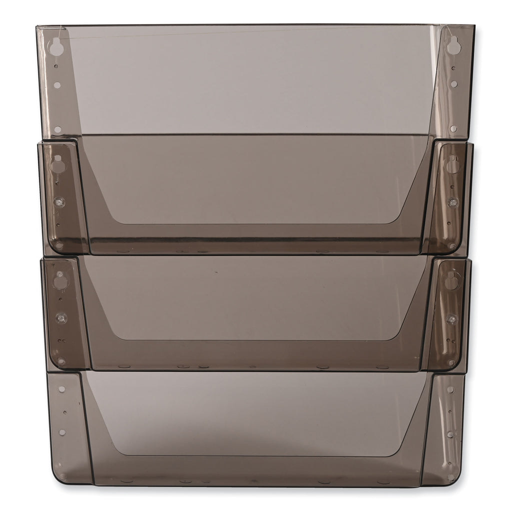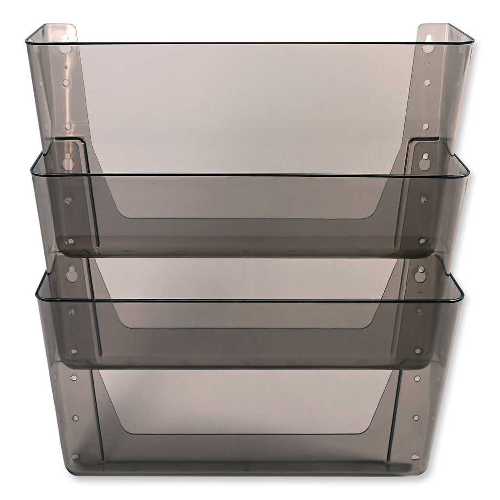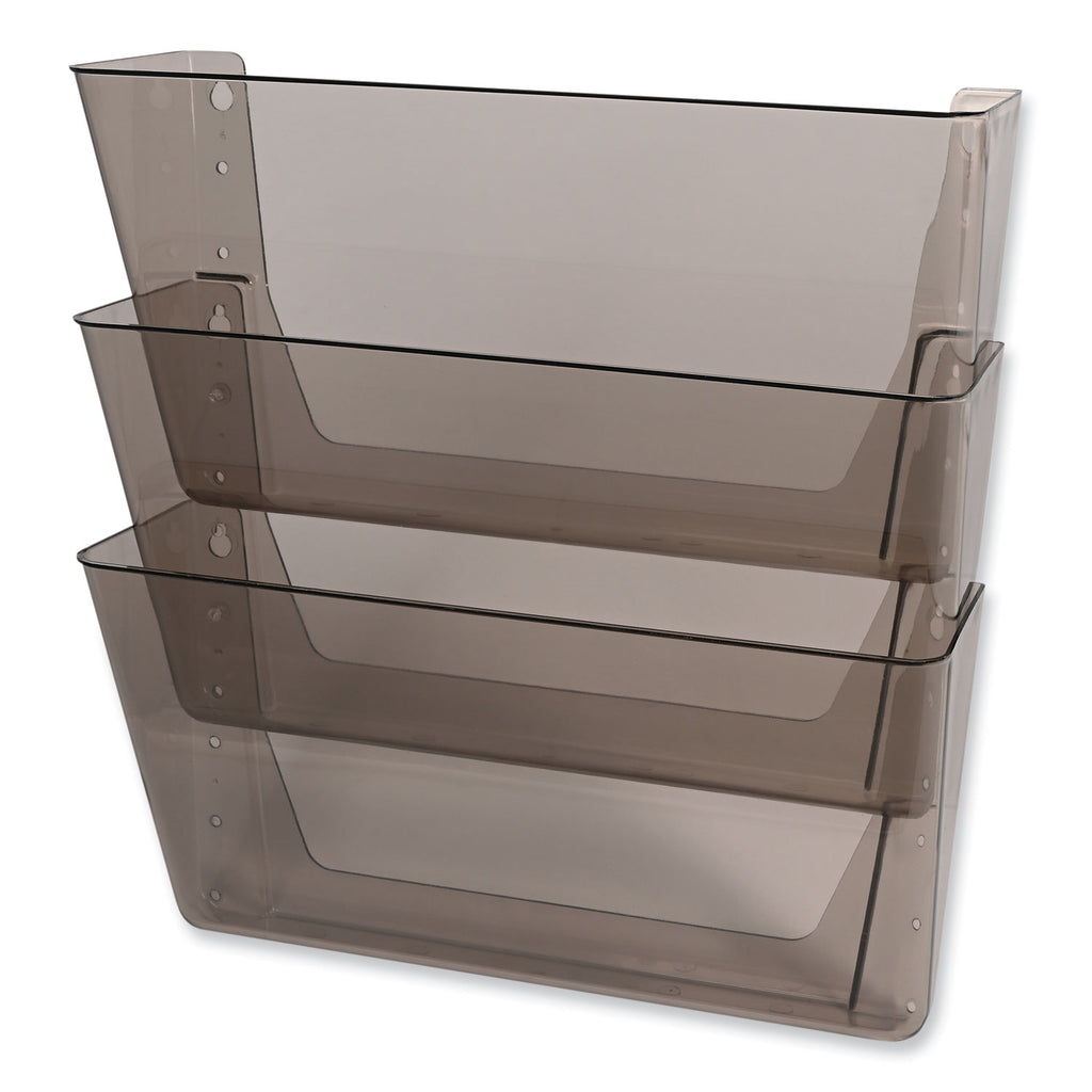 Turns wall space into file space, economically. Three plastic pockets link together to create a sturdy organization system. Brackets adjust to 2 1/2" wide for most wall panels. Also wall mountable (hardware included).