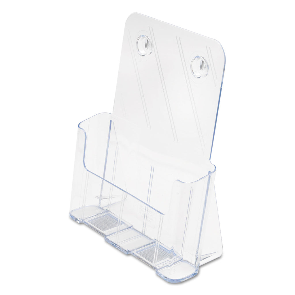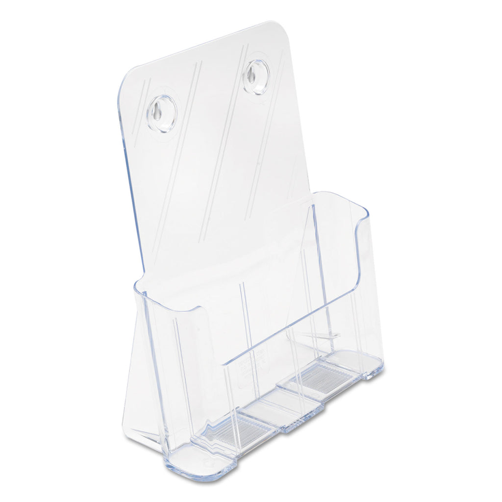 Clear plastic material puts the focus on your literature. Rounded edges offer a smooth, clean appearance. Countertop or wall mount options and clear rounded design make this a perfect product for nearly any décor.