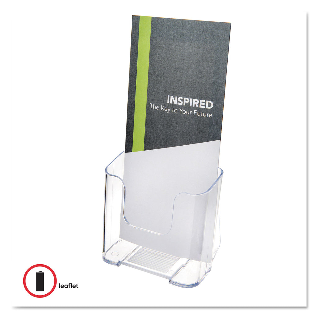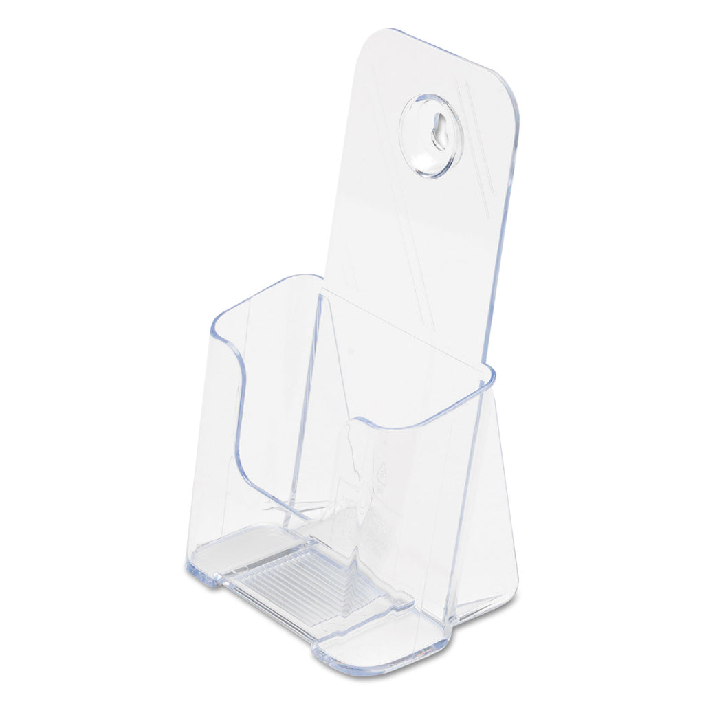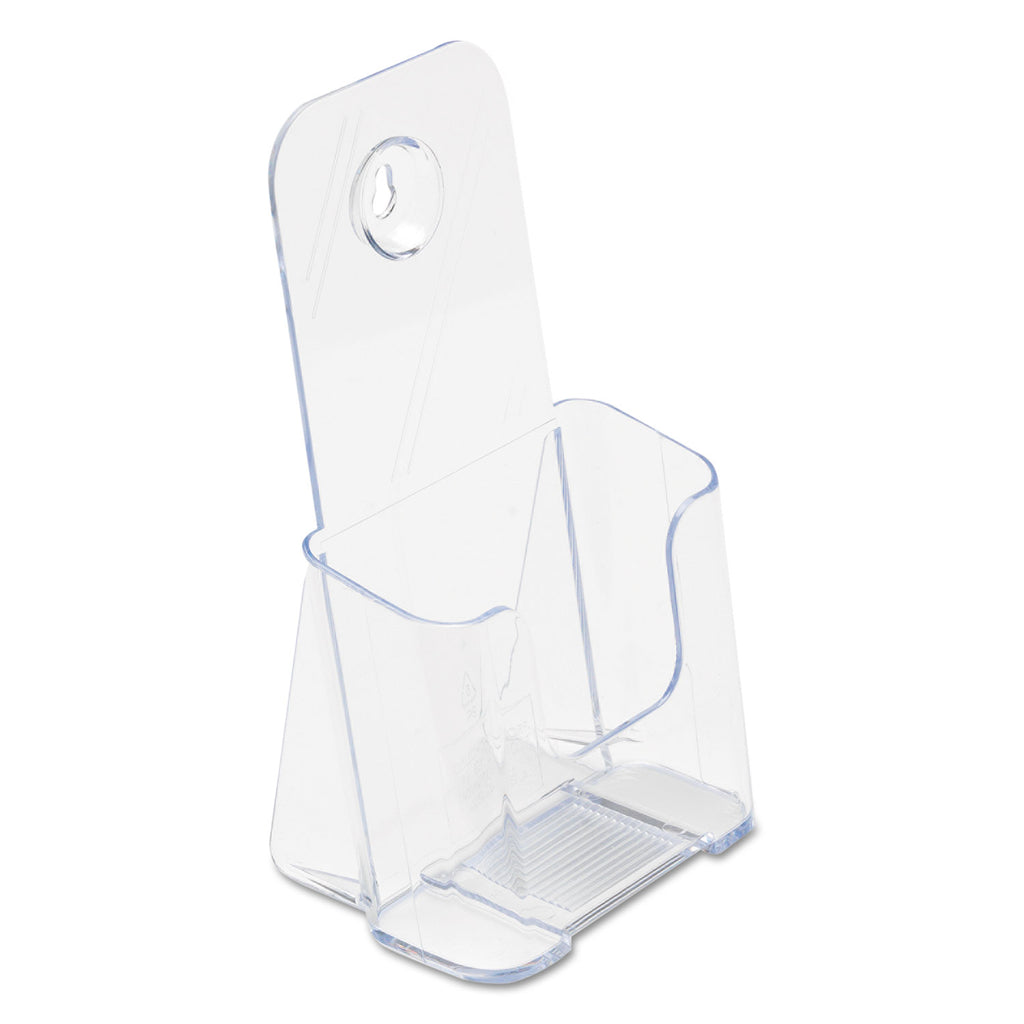Clear plastic material puts the focus on your literature. Rounded edges offer a smooth, clean appearance. Countertop or wall mount options and clear rounded design make this a perfect product for nearly any décor.