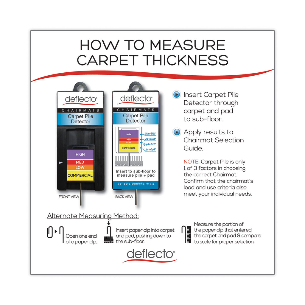 A status statement for the mainstream specialist. Superior performance. Studded design secures mat from moving while protecting carpet from caster wear, spills and heavy traffic. Medium weight chairmat for frequent use on carpets up to 1/2" thick. Free and Clear® non-phthalate, non-cadmium formula promotes a healthy work environment while offering exceptional clarity and durability.