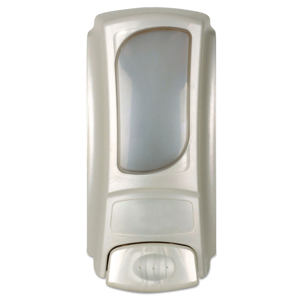 Durable, attractive push-type dispenser with unique non-corrosive key and locking mechanism to help prevent tampering and vandalism. Dispenser is wall-mounted to fit in even the tightest of spaces. Each refill holds 15 oz. (443mL) and its reservoir holds 2.3oz (70mL) of hand soap, enough for up to 70 washings. Bottle empties completely so no product is wasted. For use with Dial® Anywhere Refills.
