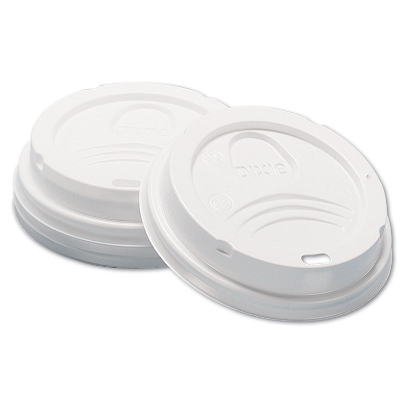 Dome design accommodates frothy hot drinks. Full-plug fit system secures lid to both the inside and outside of Dixie® compatible cups. Sip-through opening enables on-the-go enjoyment. Recessed top allows you to stack one lidded cup upon another.