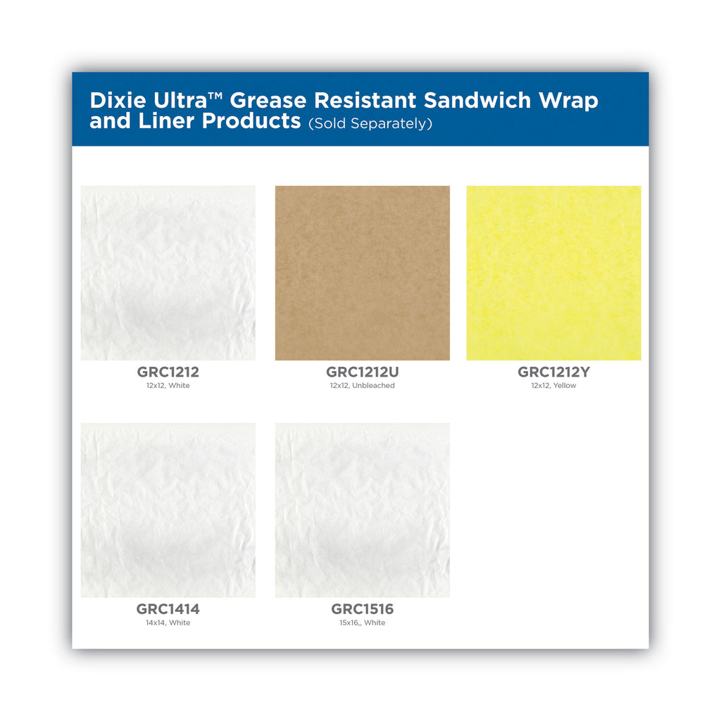 Dixie Ultra™ Grease Resistant Sandwich Wrap and Liner is a boxed alternative to traditional wax-based (OGR) products, using a starch-based coating instead of wax. It is a part of a line of Dixie Ultra™ Grease Resistant Sandwich Wrap and Liner that replaces Quik-Rap® with the same sized wraps and case counts and a part of a line of Dixie® wax-alternative papers and insulated wraps and liners. This oil and grease resistant sheet offers protection for greasy foods.