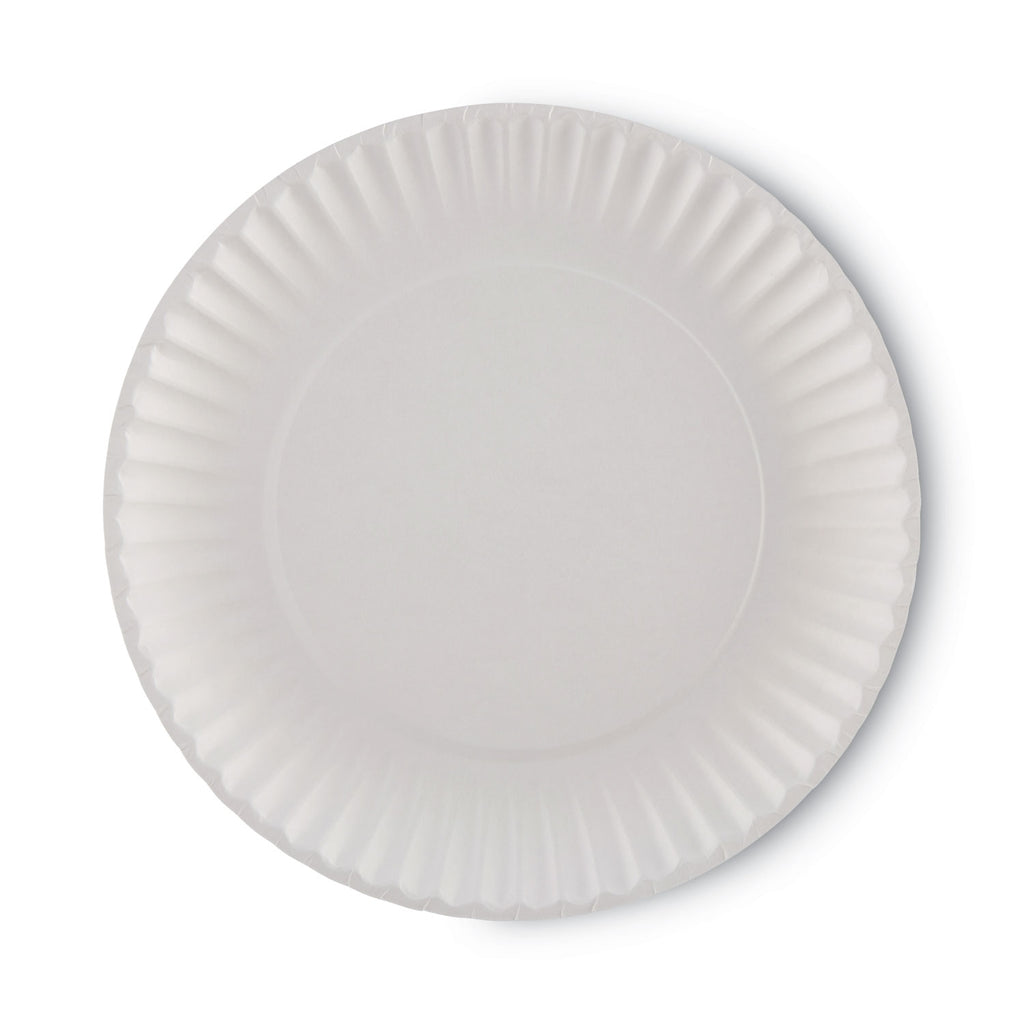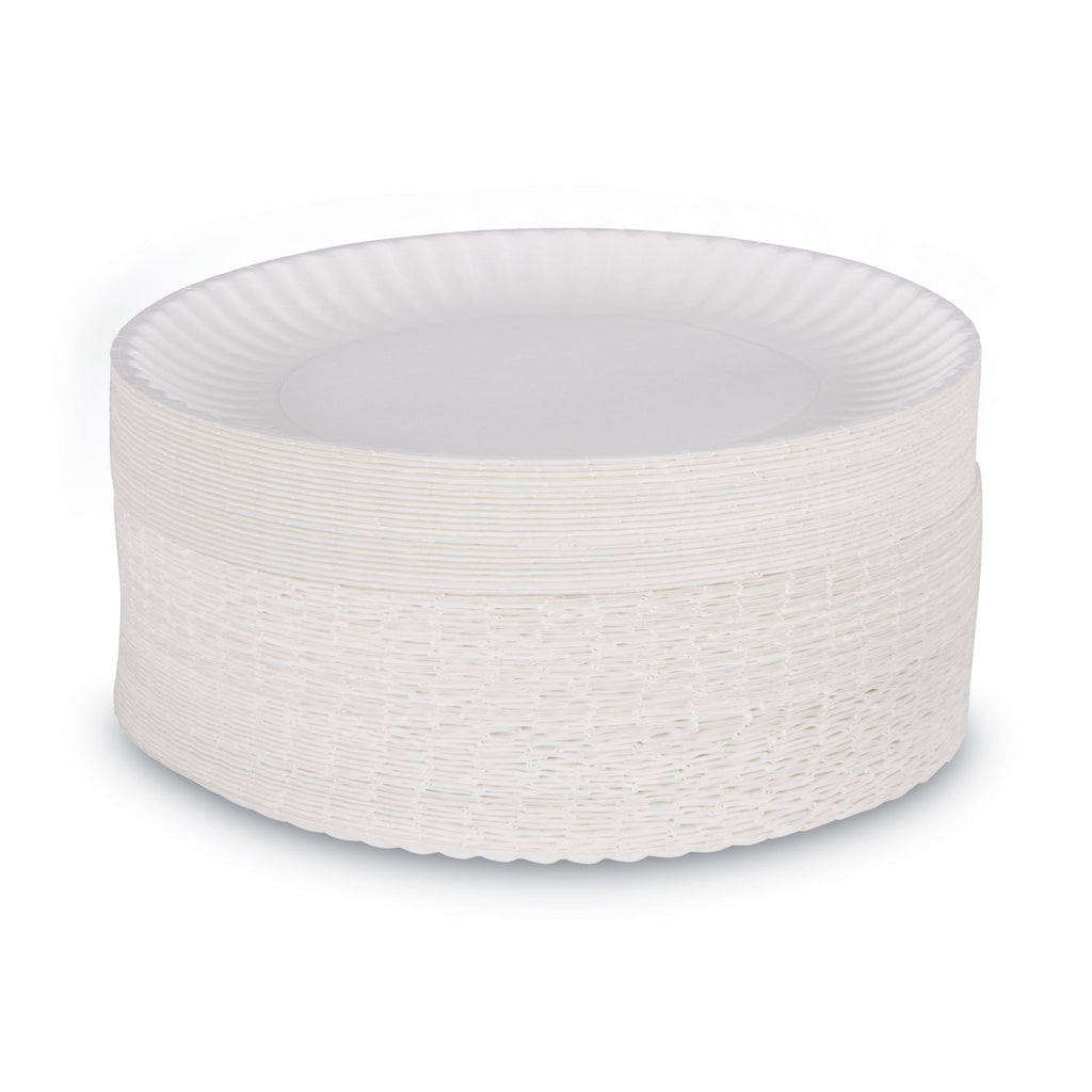Uncoated paper construction makes these plates an economical choice for lightweight foods.
