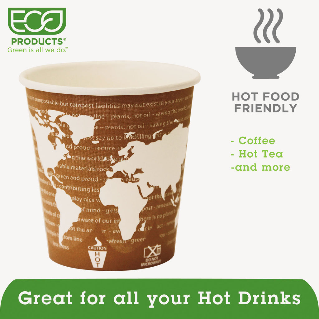 Hold the world in the palm of your hand, with cups that are designed with an attractive World Art™ pattern. Lined with Ingeo™, a leak-proof plant-based plastic, to prevent leaks. Sturdy cups are an excellent choice for hot beverages like coffee and tea.