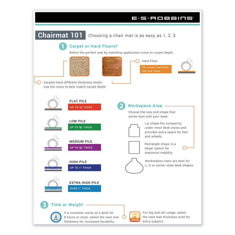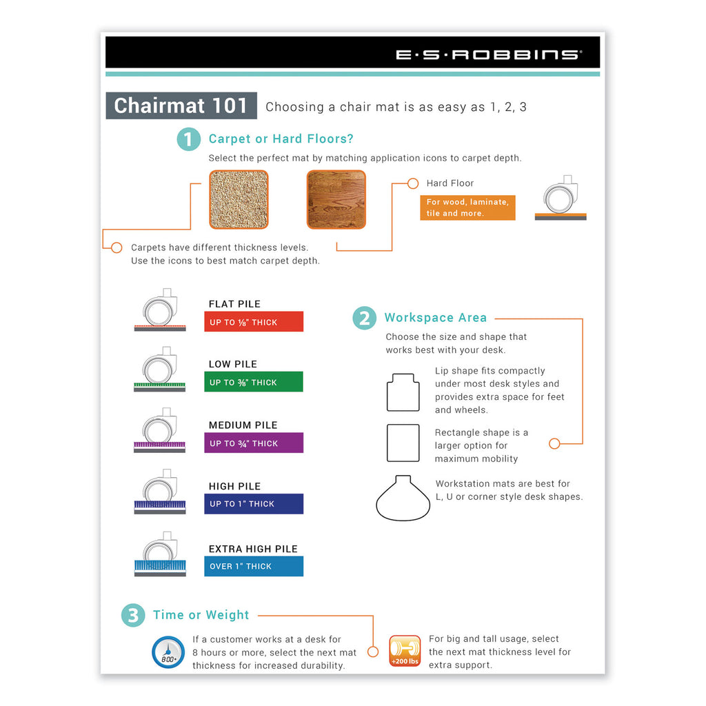 High-quality task chair mat is ideal for home and light office applications. Exclusive AnchorBar® cleats hold the mat firmly in place, yet are gentle on both your carpet and fingers. Straight edge.