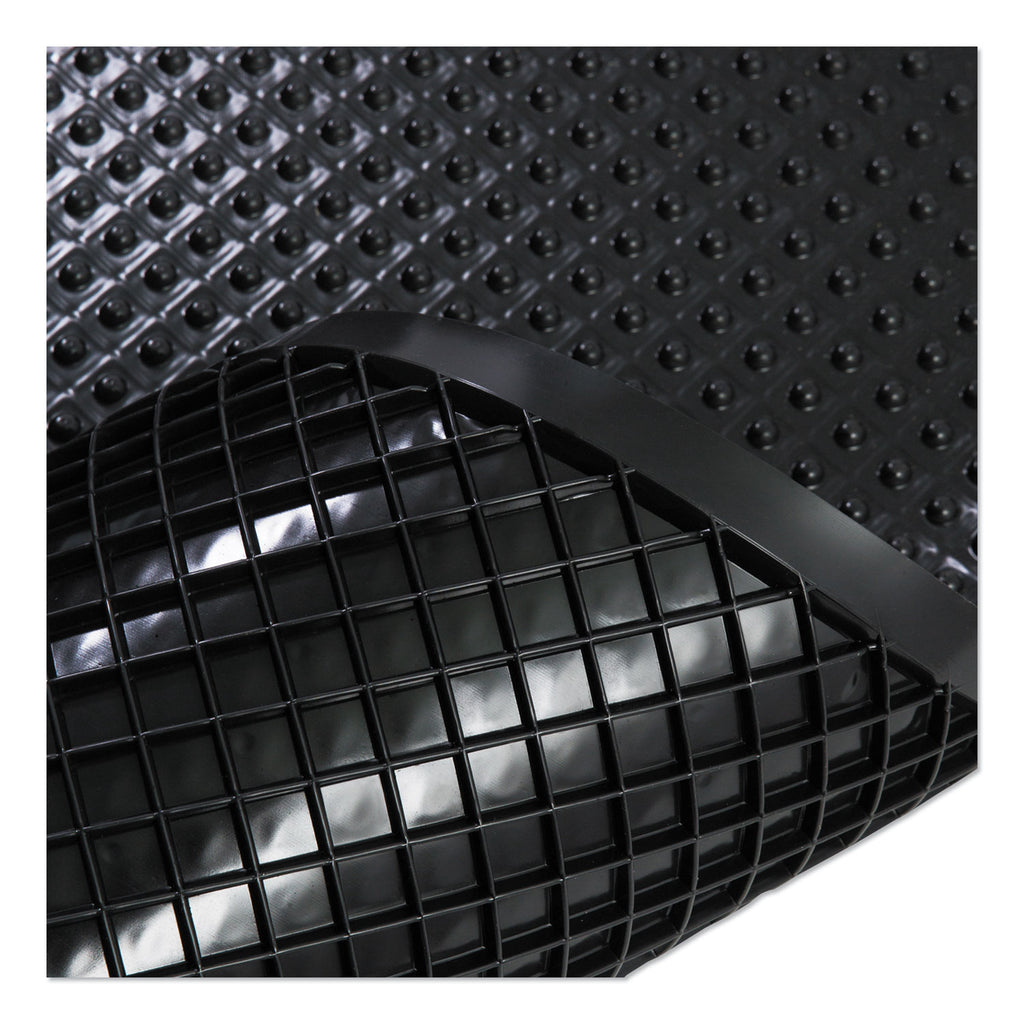 Choose to feel good with sturdy, ergonomically-designed mats with a domed surface that provides outstanding fatigue relief. Excellent for use in a variety of continuous standing applications to eliminate discomfort. Designed with tapered edges and rounded corners. Waffle underside grips hard floors or carpet. For dry areas only.
