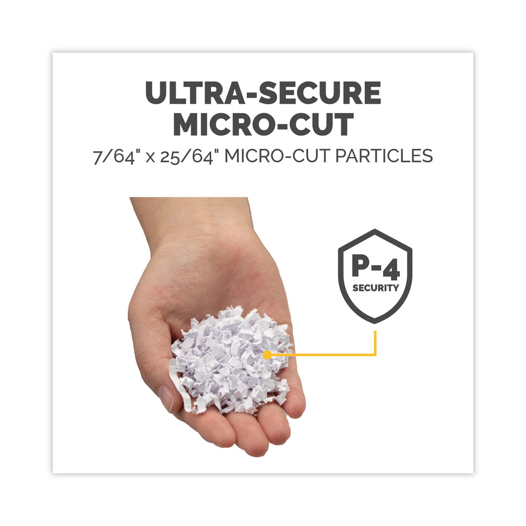 • Shreds 10 sheets per pass into 7/64" x 25/64" micro-cut particles (Security Level P-4).