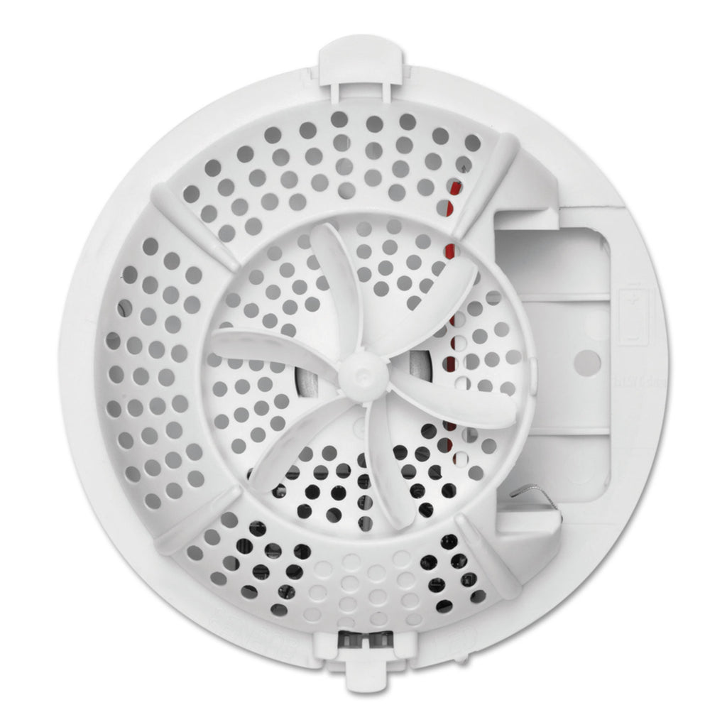 Convenient air freshener dispenser with a motor-driven fan that moves fragrance further than a typical passive system. Powerful enough to freshen even your largest spaces. Easy to refill air freshener dispenser is the only air freshener dispenser that uses the fragranced cover of the dispenser as the air freshener refill itself. The smart system releases approximately the same amount of air freshener daily over 30 days by turning the fan sparingly in week one, and gradually turning it more frequently until week four when the fan runs constantly. The smart dispenser comes with a light that alerts you to change your cover after 30 days, and begins counting down another 30 days once you change the cover!