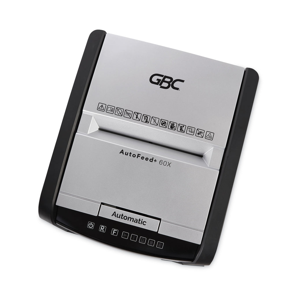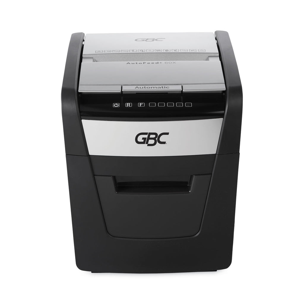 Spend less time shredding and more time on other tasks. GBC AutoFeed+ Shredders take the manual work out of shredding to make your day easier. Simply stack, shut and walk away! The GBC AutoFeed+ Shredder is fully-automatic, making it the perfect addition to your home office. Stack sheets in the feeder for automatic shredding or manually feed sheets. Super cross-cut (P-4) shred style is perfect for shredding confidential or personal information. Runs ultra-quietly to help minimize noisy disruptions in your home office. Powerful induction motor for minutes of continuous run time and large bin lets you shred longer without stopping. Auto forward and reverse functions help prevent jams. Auto shreds documents, paper clips and staples, while credit cards must be manually inserted.