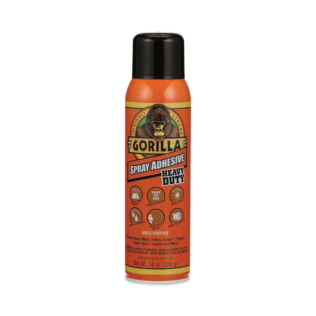 Gorilla Spray Adhesive is heavy duty, multi-purpose and easy to use. While repositionable for up to 10 minutes, Gorilla Spray adhesive forms a clear, permanent bond that is photo safe. Its wide pad nozzle and controlled fine mist provide an even application on the project you are working on.