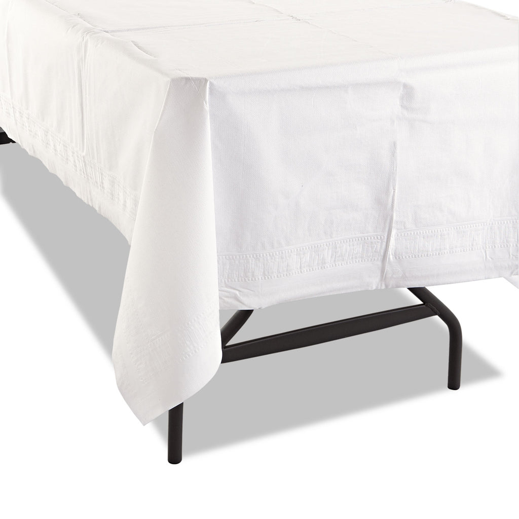 Table covers offer a dual layering system for better absorbency. Two layers of highly absorbent tissue are bonded to a “spill-proof“ poly liner. Overall embossing pattern ensures no separation.