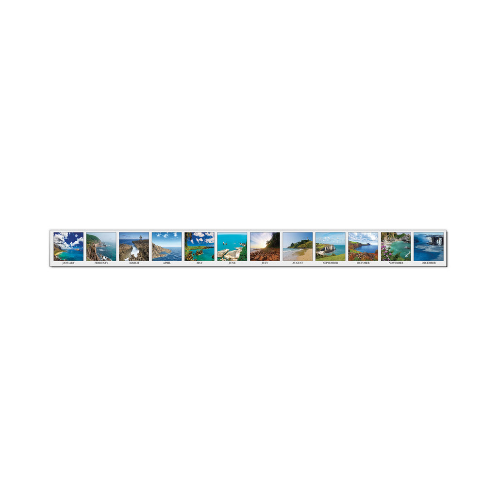 Full seascape background ghost view behind the calendar each month that gives you a relaxing feeling. The pages are bound at the top with black leatherette binding and matching reinforced corners with perforated pages for easy removal. Made entirely of recycled materials.