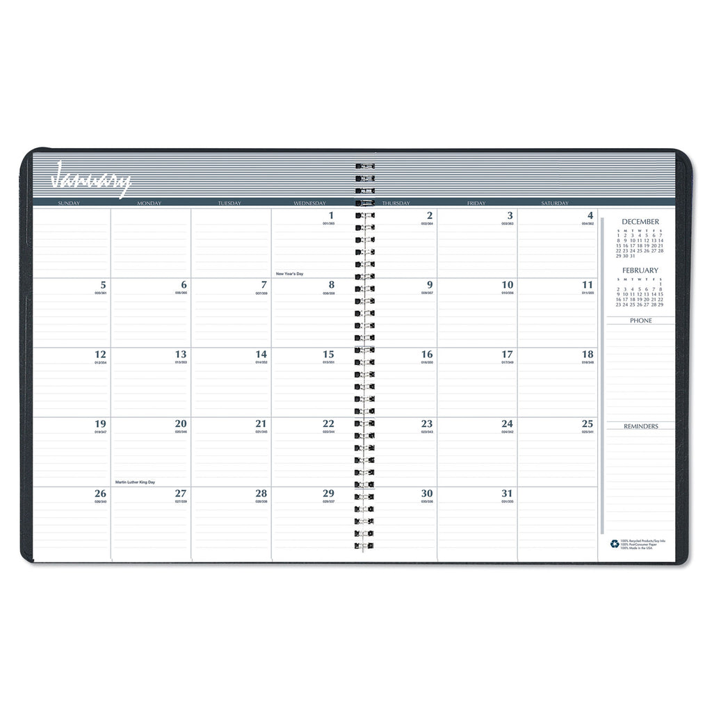 Simple monthly page spread enables you to see your entire month's schedule for two years. Full monthly view per two-page spread. Yearly expense log and 30 memo pages included.