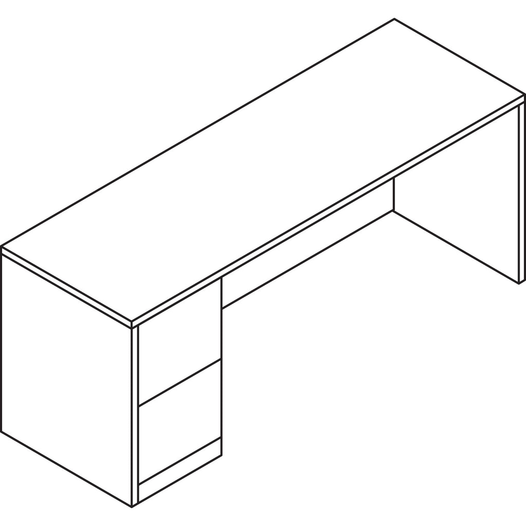 Hard-working, good-looking and built to survive a lifetime of overtime. Durable abrasion- and stain- resistant laminate. Clean, square edges for a streamlined look. Drawers operate on ball bearing suspension with full extension. High drawer sides accommodate hanging files. Full-height modesty panel for privacy. HON® "One Key" core removable lock.