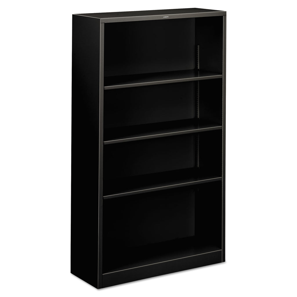 34-1/2w x 12-5/8d. Shelves adjust in 1/2" increments. Straight sides and backs allow flush alignment. Shelf count includes bottom of bookcase. Bookcases ship assembled.