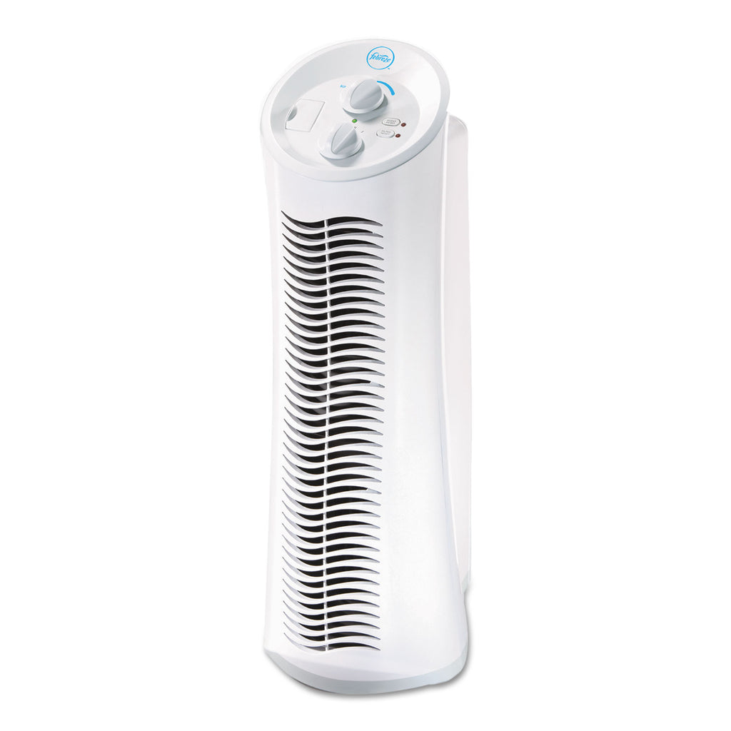 Tower air purifier with HEPA Type filter. Includes Febreze® freshness scent control. Circulates and filters up to five times an hour. Three air cleaning levels.