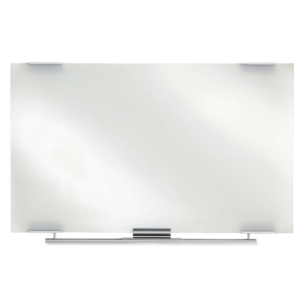 Frameless, seamless, hi-tech design with architectural quality. Combining form and function, this premium glass dry erase board features design and performance. Markers glide across the glass surface while the ultra-white backing makes writing bold and highly visible. Aluminum mounting elements allow the frameless design to “float” off the wall. 1/4" tempered safety glass will never stain or ghost. Includes clip-on marker and adjustable eraser tray.