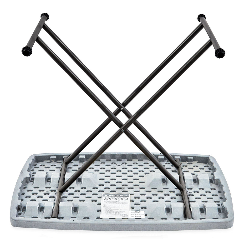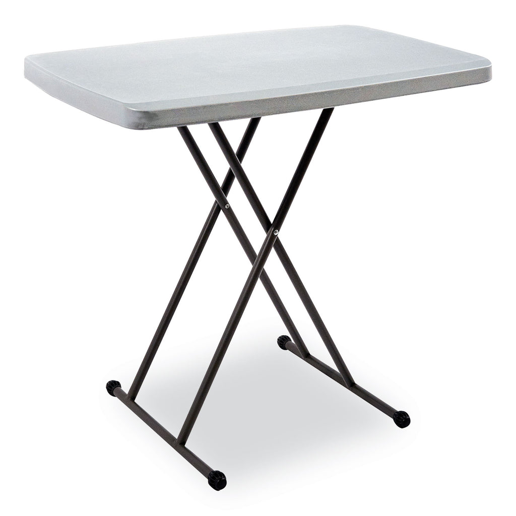 Lightweight, durable and portable. The perfect size table provides extra space. The dent- and scratch-resistant top is easy-to-clean and is constructed of blow molded high-density polyethylene. Heavy gauge, sturdy 1" steel tube legs, with charcoal gray powder coat finish, folds into recessed channels for easy storage. Height is adjustable at either 25" or 28". Ideal for indoor or outdoor use.