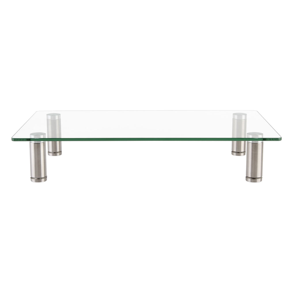 Elevate your monitor to a proper eye position with this sleek looking tempered glass monitor riser. Adjustable stainless steel feet allow the user to rise or lower their monitor riser easily and provides increased storage room beneath the desktop. Supports up to 44 lb. and screen sizes of 13"-22".