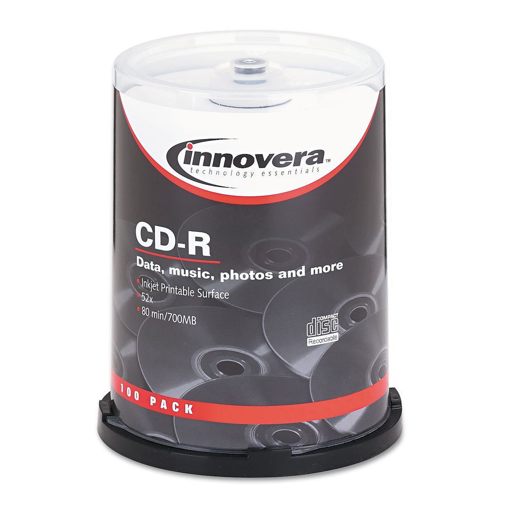 Print directly onto the disc for quick, convenient labeling. Create custom labels to personalize your media. Economical discs are great for making personalized music CDs, data discs, or video CDs. Write-once format protects data from overwrites and erasures. Convenient spindle keeps discs organized in one location.