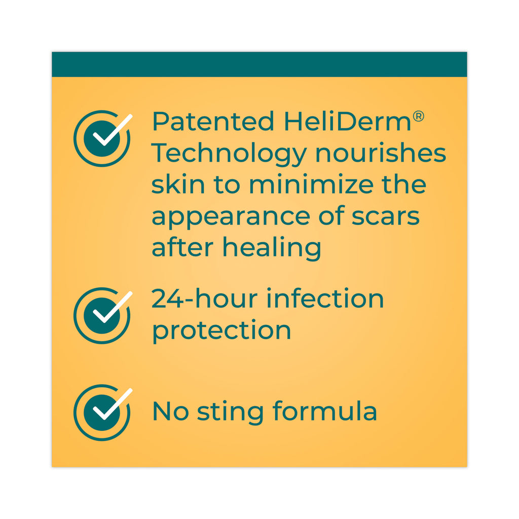 - Contains HeliDerm Technology that provides a nourishing environment for skin to heal, resulting in healthier looking skin after use.
