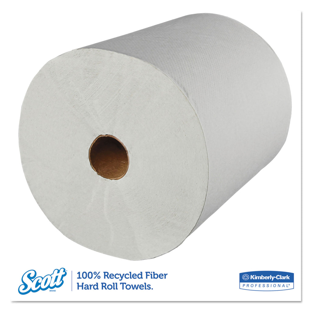Scott Essential provides reliable balance of efficiency, performance and value. If you’re looking for high-capacity commercial paper towels compatible with most universal roll paper towel dispensers, the Scott Essential 100% Recycled Fiber Hard Roll Paper Towels are an excellent choice for your business. The roll is compatible with a variety of Kimberly-Clark Professional dispensers and many universal towel dispensers. Plus, they are designed to reduce maintenance time, run-outs and complaints. These absorbent recycled paper towels are designed for efficient general-purpose cleaning and drying, so your employees and guests will use less, saving you money.