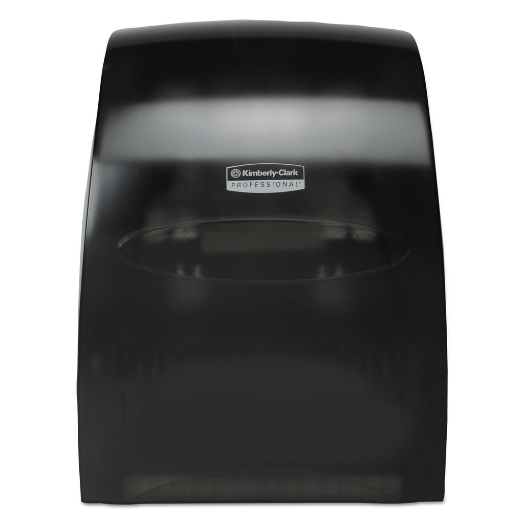Reduce maintenance time and run-outs with a high-capacity washroom towel system. The Sanitouch Hard Roll Paper Towel Dispenser is a reliable and efficient hand-drying system that's perfect for your workplace. Whether you have a retail location, office or high-traffic location, your washroom guests will only touch the towel they use, thanks to the touch free, one-at-a-time dispensing system. This wall mount dispenser is made of durable plastic and comes in an attractive shade of black, called Smoke, so it will go with any washroom decor. Compatible with Kleenex® and Scott® Brand Hard Roll towels with a 1.75" core, by providing high-quality towels in your washroom, you'll increase your maintenance efficiency.