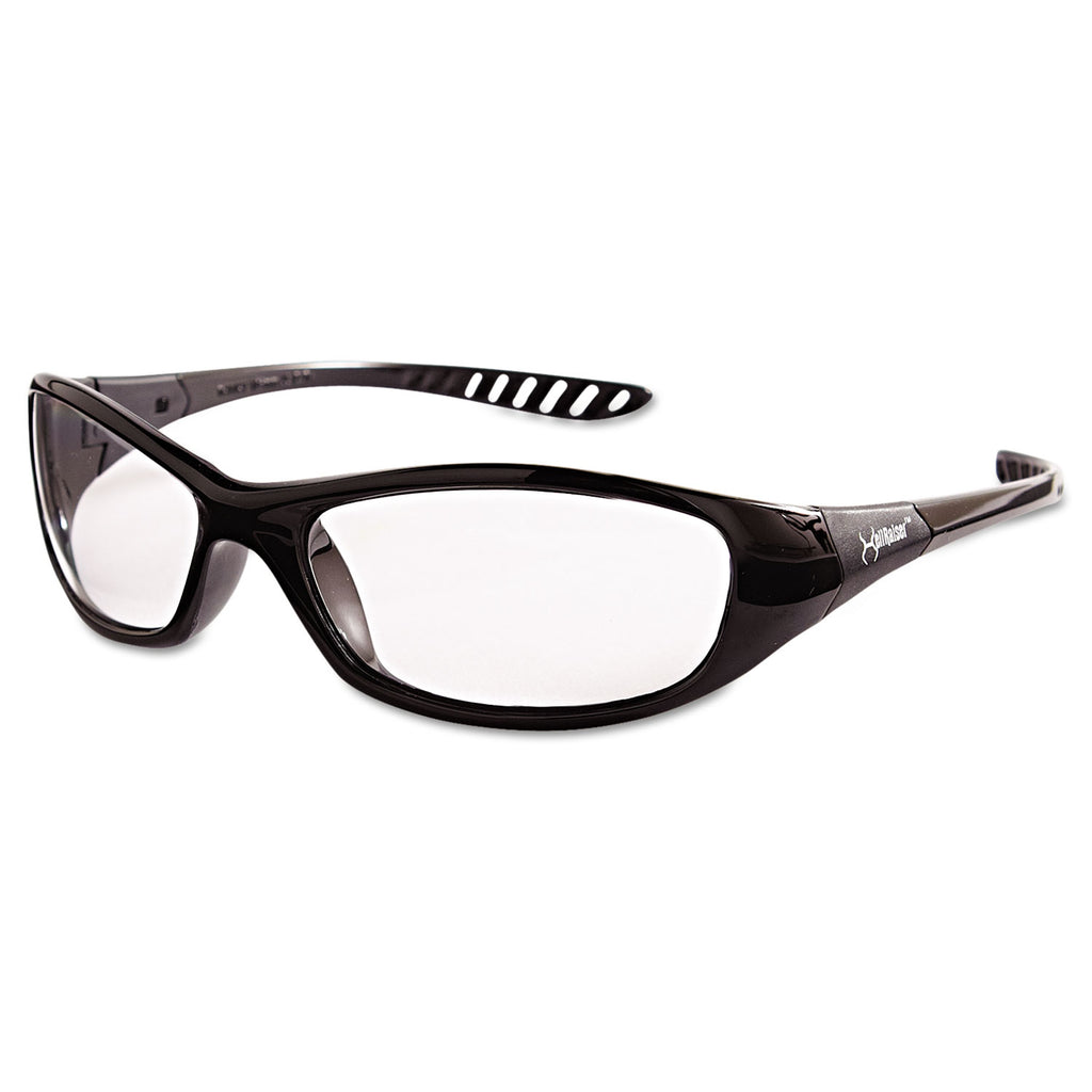Safety glasses feature a streamlined, modern style for a sunglass-like appearance. Extremely lightweight design makes them comfortable for extended wear. Durable, high-performance polycarbonate lenses. Flex point temples increase comfort and stability. Glasses meet ANSI Z87.1+ standard for impact resistance.