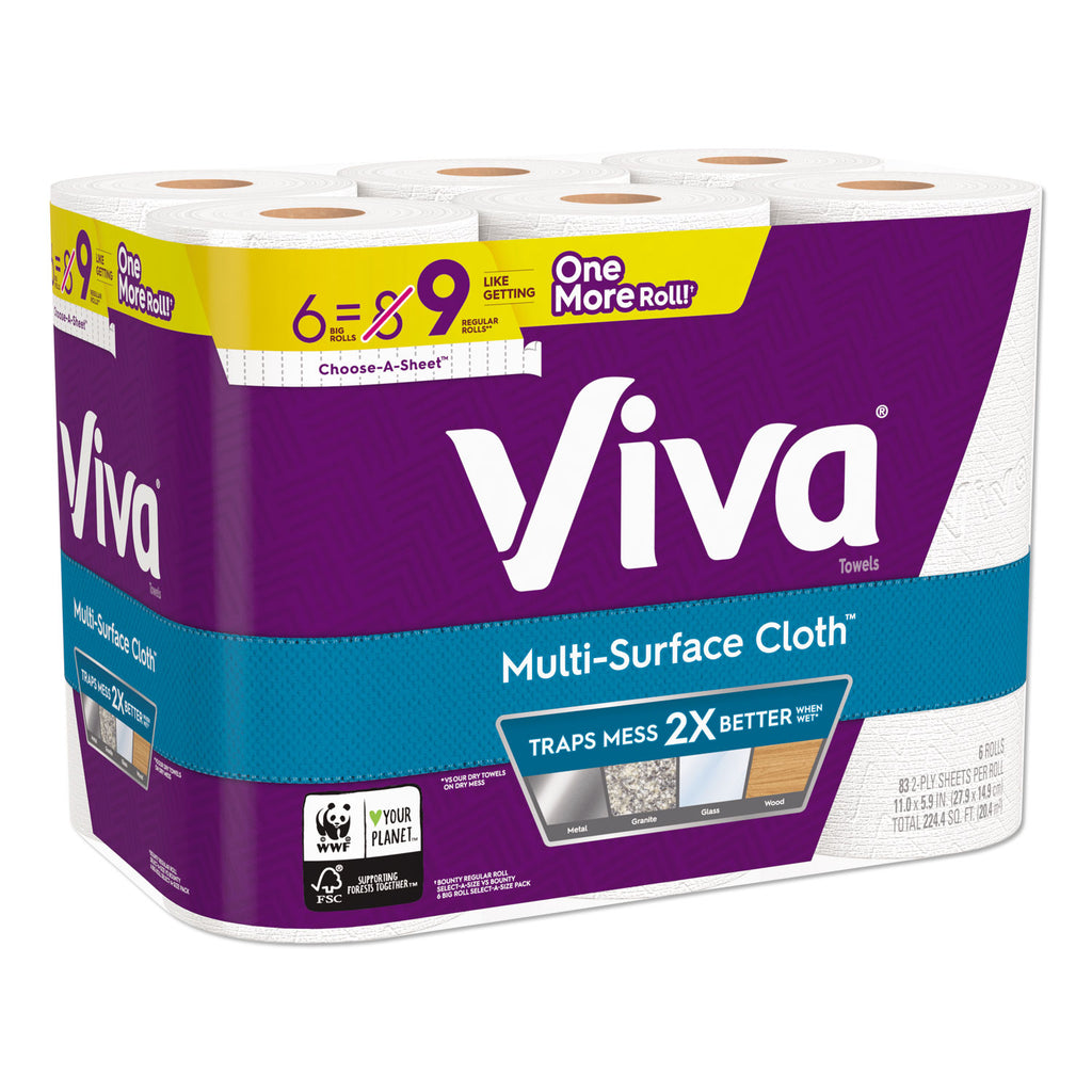 VIVA Multi-Surface Cloth Paper Towels trap mess 2X better when wet! With Texture-Weave and two sponge-like absorbent layers, VIVA Multi-Surface Cloth Towels help you maintain an exceptional clean every day. With its cloth-like durability, these paper towels are strong, absorbent, and versatile for cleanups throughout your home, from the kitchen countertop to bathroom surfaces and all rooms in between. Trap and lock mess safely on many surfaces: granite, stainless steel, glass and wood.